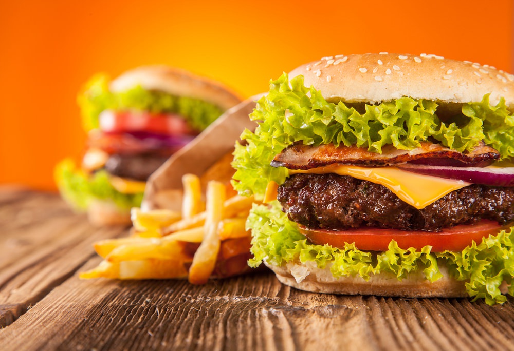 Brioche bun, 125 gram smoky mountains hamburger, sla, tomaten relish, sweet pickled relish, Amerikaanse smoky mosterd, tomaat, rode ui, cheddar, verse friet, rauwkost en frietsaus